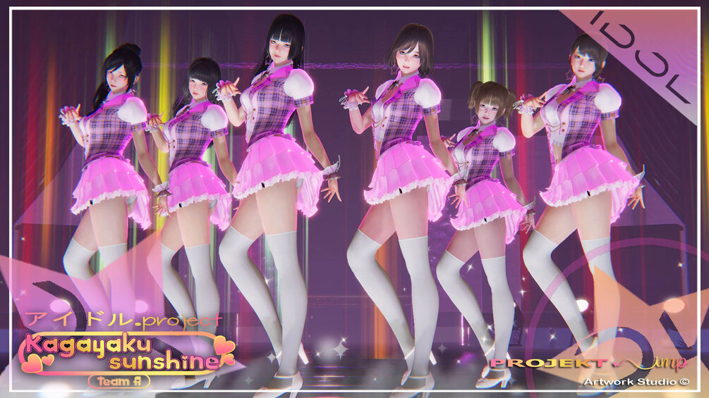 Profile : Kagayaku Sunshine (輝く 日光 / Sparkle Sunshine) is a 3D Japanese Idol Group for HS2/AI Shoujo. Has total of 3 team (A,B and C) and 6 members for each team, 18 as a total group members. Group formed in December 2021 and officially announced for public release in January 2020 as a Idol Project for Illusion game. All group members age ranged around 18s-22s. The average age of the group members has remained more or less unchanged since its original formation because the group maintains a "school-like" system for their appearance, none of them are underage.
